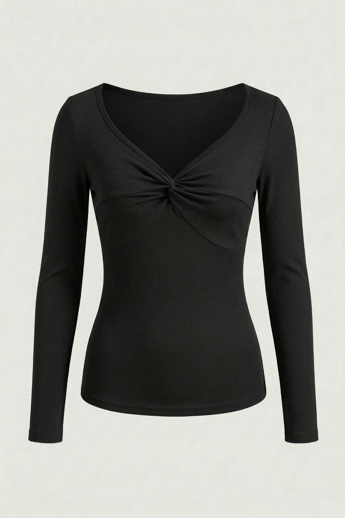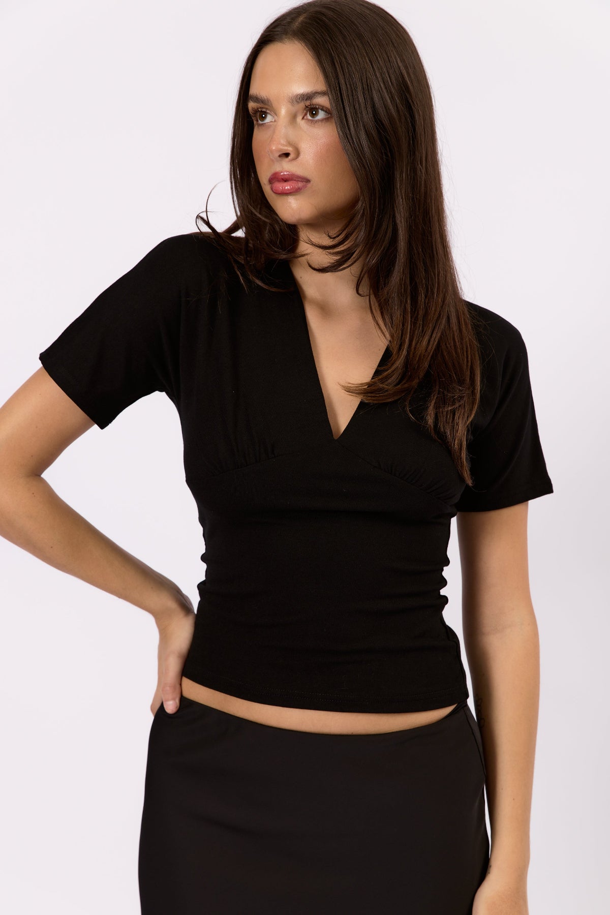 Margaux Deep V Henley Top - Black