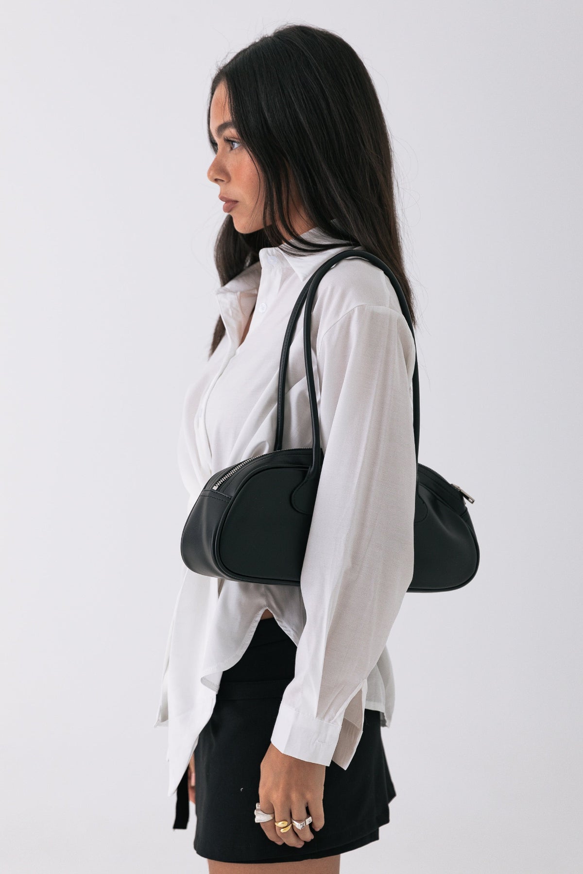 Sleek and sculptural. The Alba Bag features a smooth, structured silhouette with double handles and a full zip closure. Minimal on hardware, clean on shape—wear it over the shoulder or carry by hand for everyday ease.