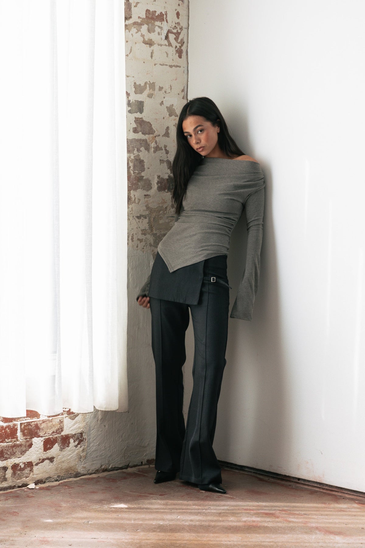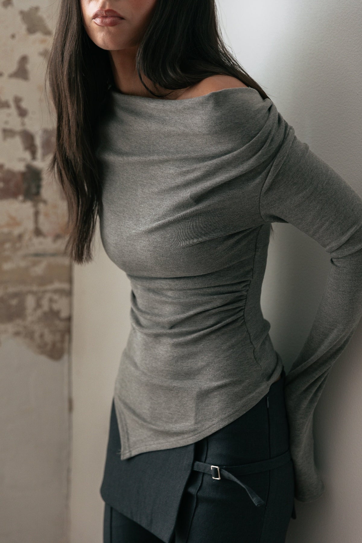 Asher Ruched Long Sleeve - Grey