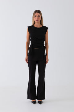 Asher Ruched Long Sleeve Top - Black
