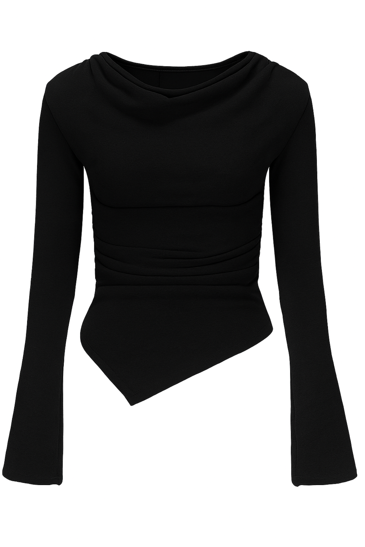 Sleek, sculpted, and a little unexpected. The Asher Top features a soft draped neckline, ruched sides, and an asymmetric hem that hugs and shapes. Made from stretch jersey for a close, comfortable fit—style it with denim or layer under tailoring.