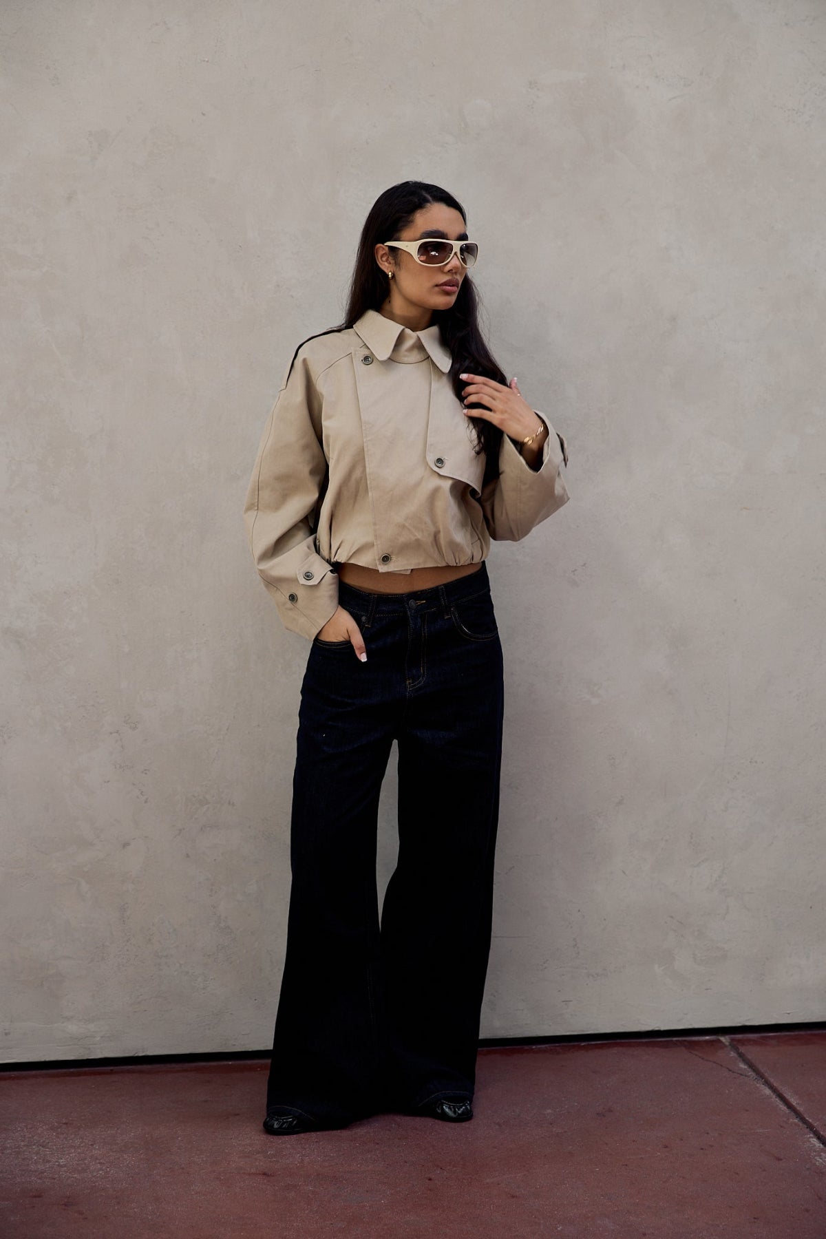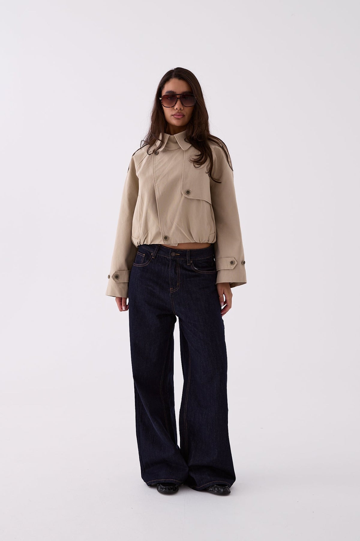 A modern rework of the classic trench. The Darcy Cropped Trench features a structured cotton fabrication, relaxed drape, and cropped length with an elasticated hem for subtle shape. Designed with a double-breasted front and sharp collar, it’s an elevated outer layer that adds effortless balance to any look.