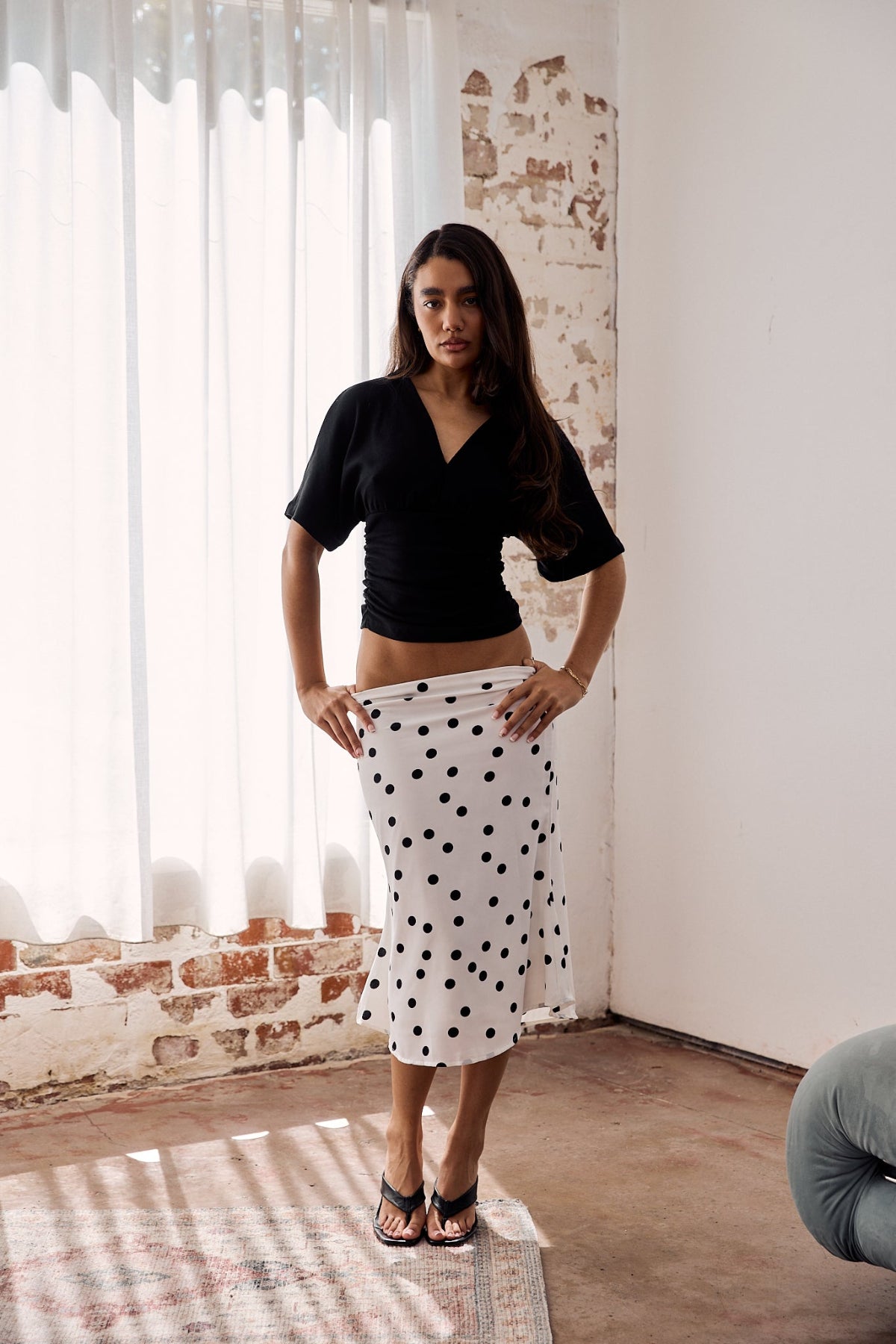 Soft structure meets effortless ease. The Emery Top features a deep V-neckline, relaxed flutter sleeves, and a gathered waist that defines the silhouette while keeping a comfortable drape. Designed to transition seamlessly from day to night, pair with tailored pants or a bias skirt for a balanced, modern look.