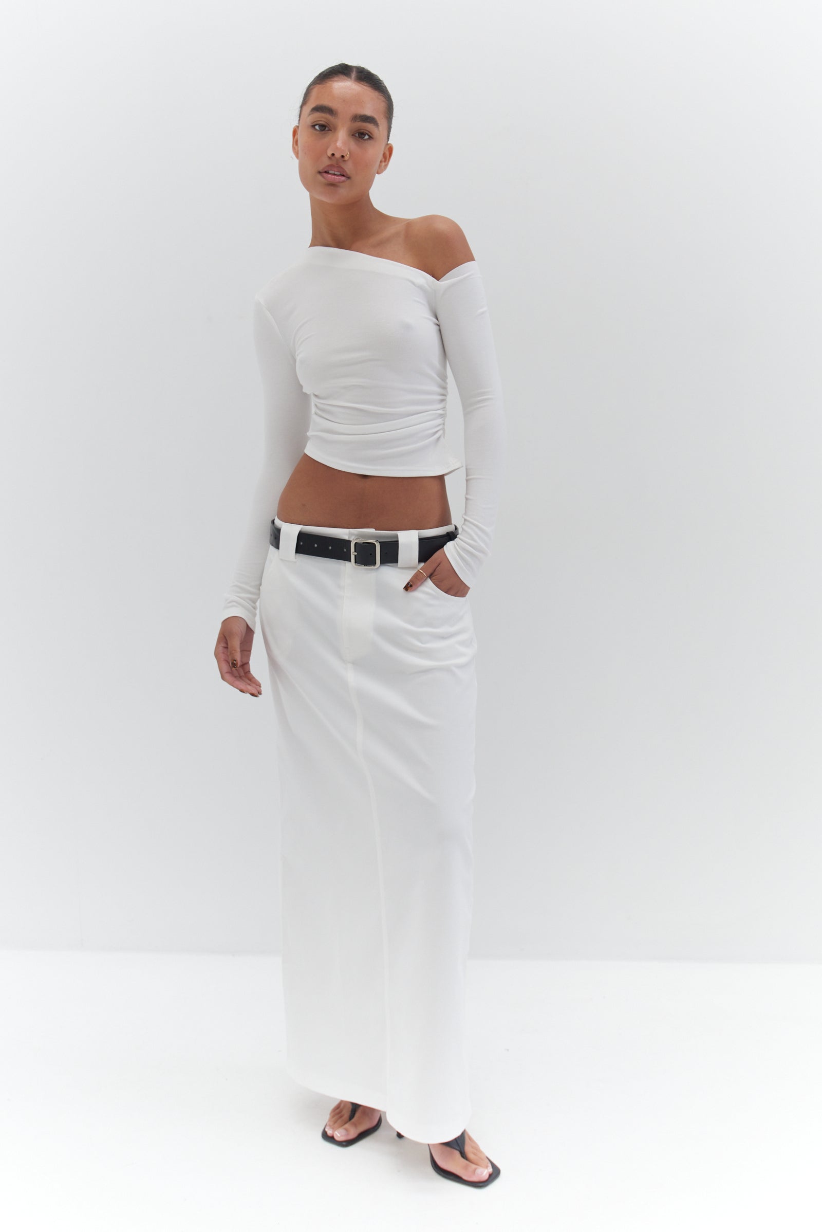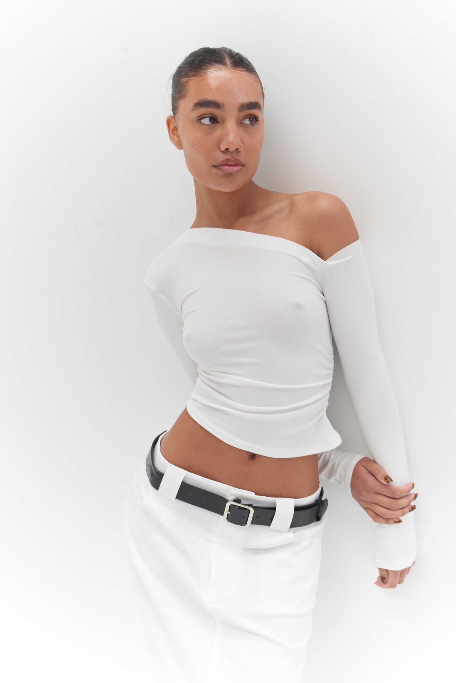 Introducing the Evie Off The Shoulder Top – a perfect style for any modern wardrobe. Combining a soft stretchy fabric with side ruche detail and a slightly cropped length, this romantic top will give you an effortless sense of style