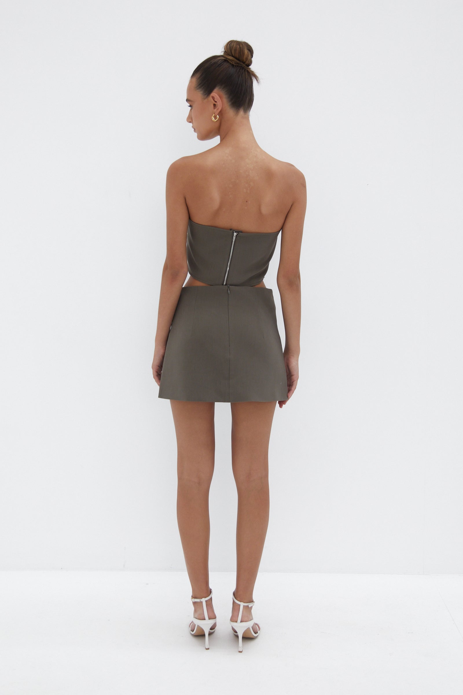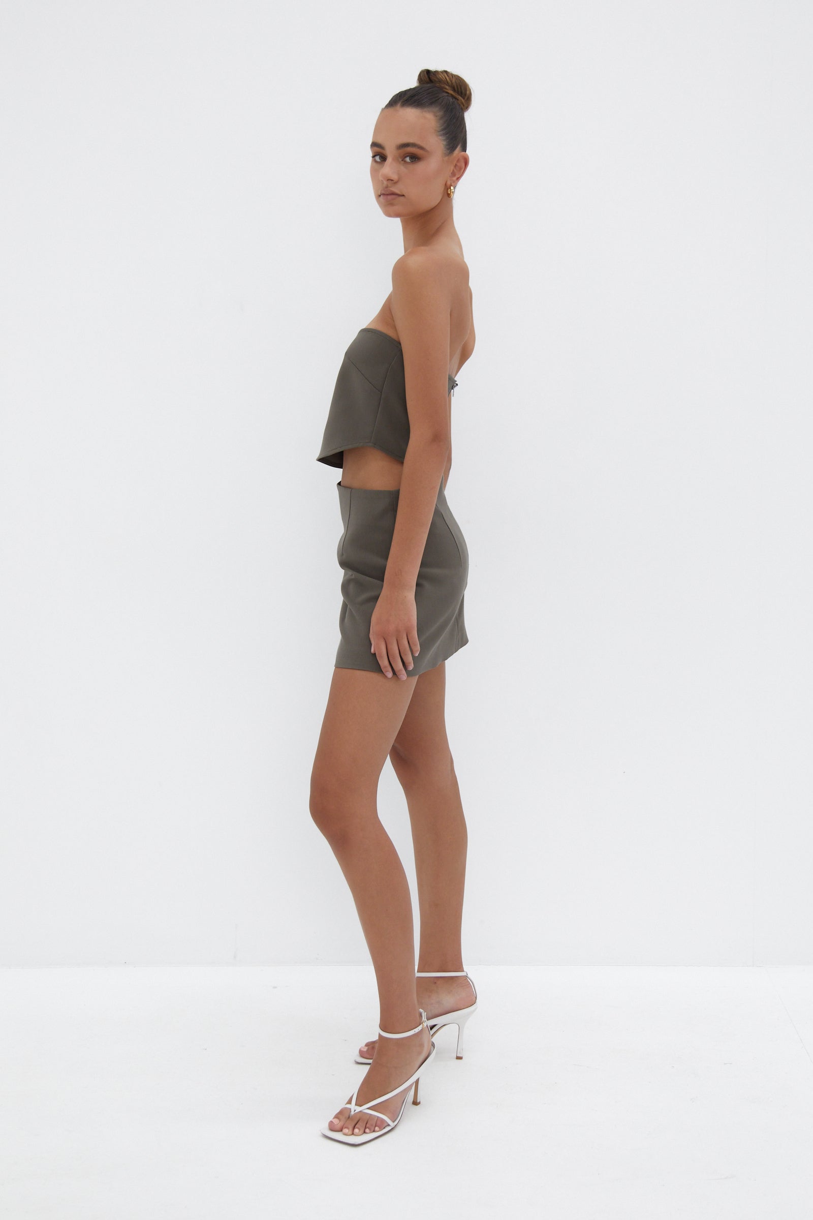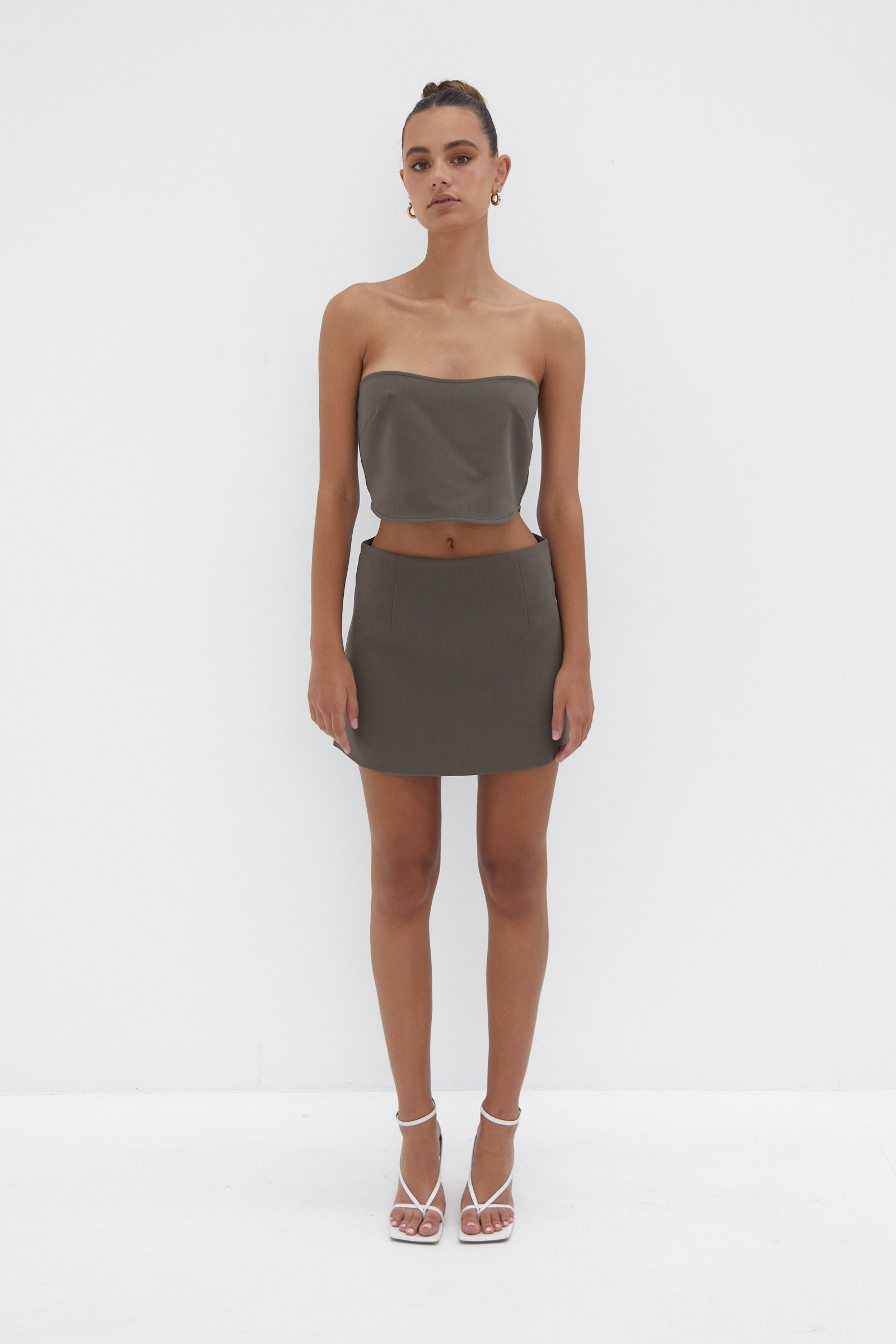 Sweet heart top featuring cropped length, curved hem, exposed back zipper and dart detail
