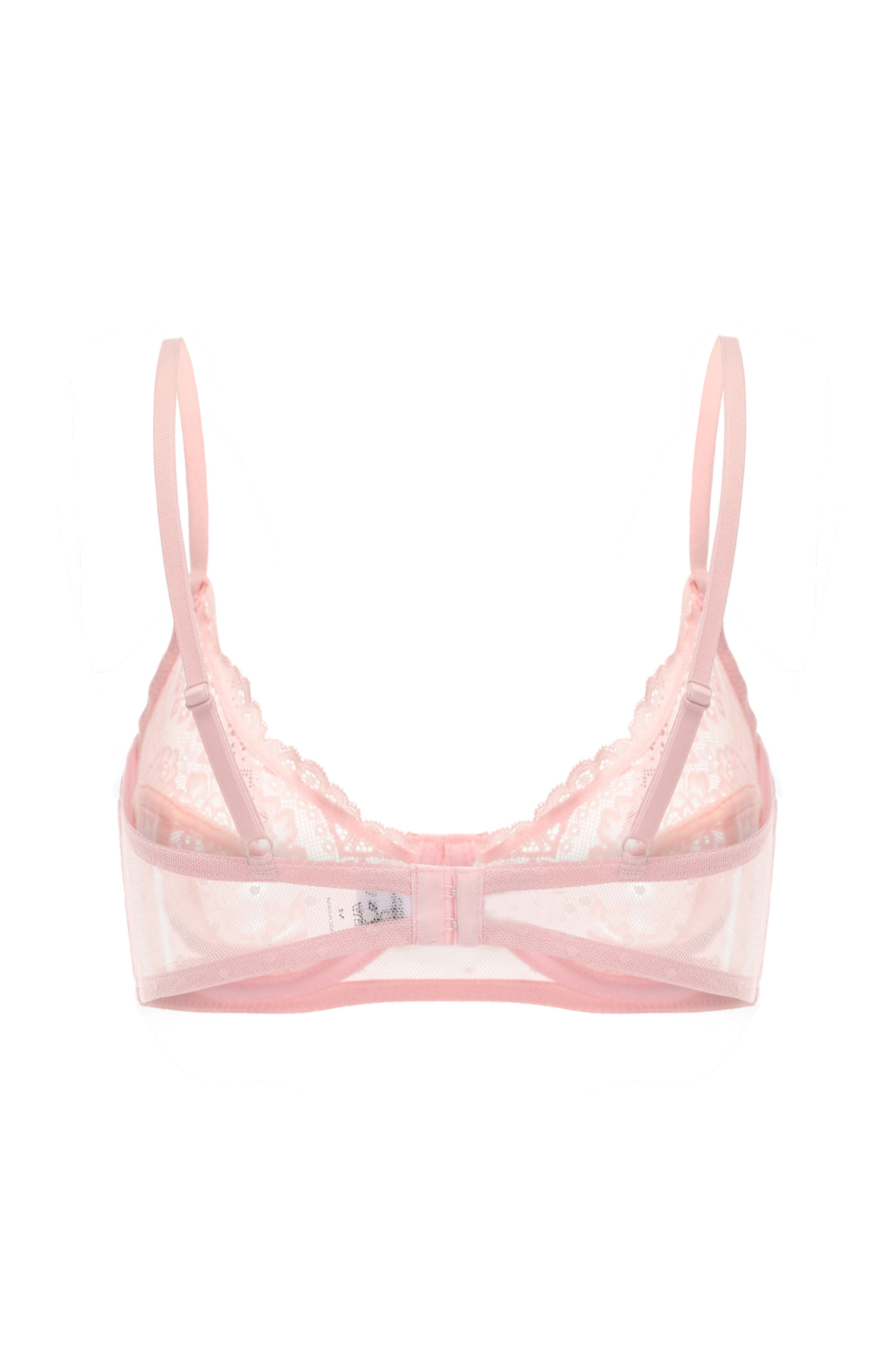 This pink Lace Balconette Bra features a delicate bow detail, supportive underwire, and sheer embroidered material. The adjustable straps provide a customizable fit and all-day comfort.
