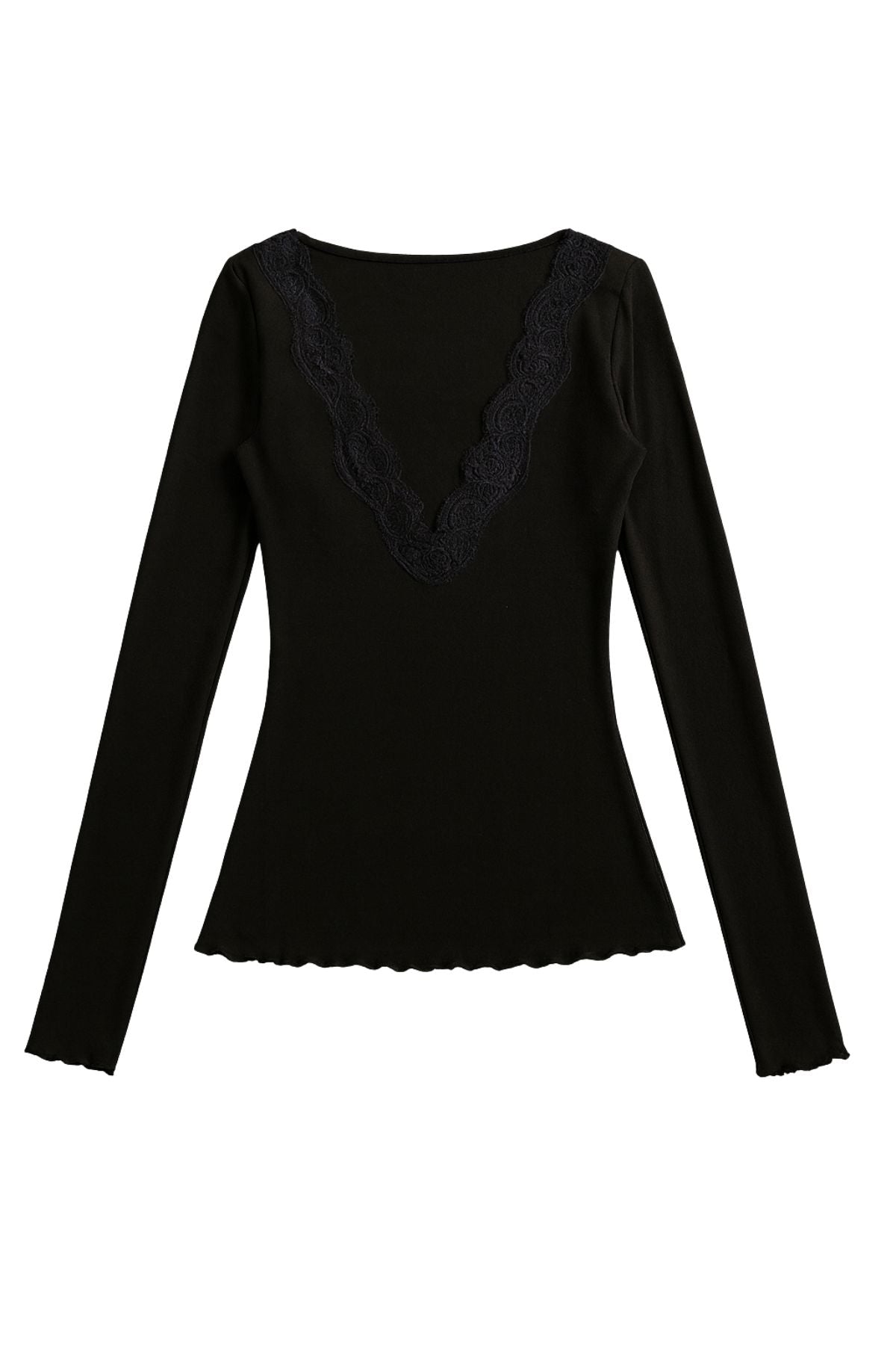 Lia Lace Trim Long Sleeve Top - Black