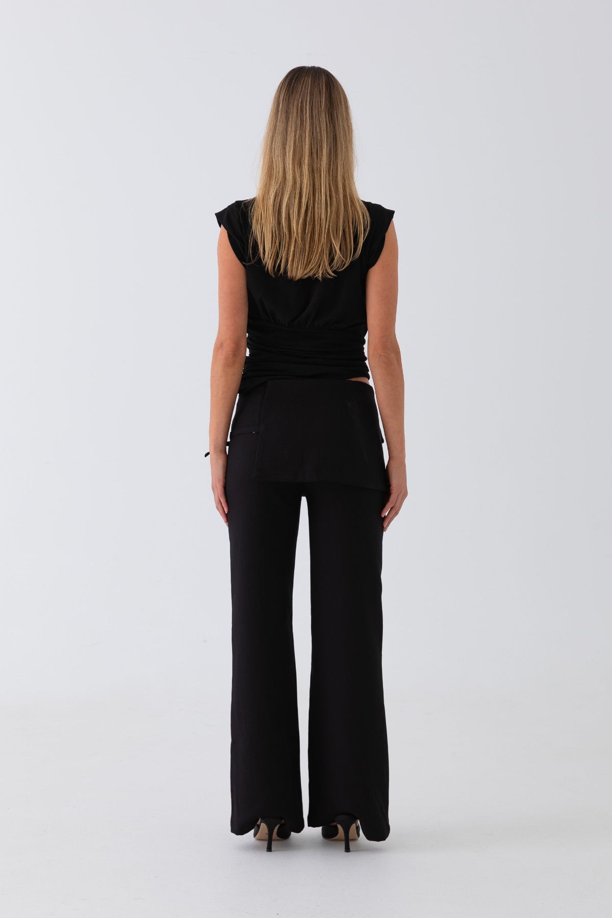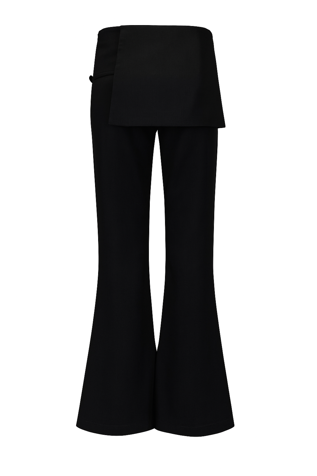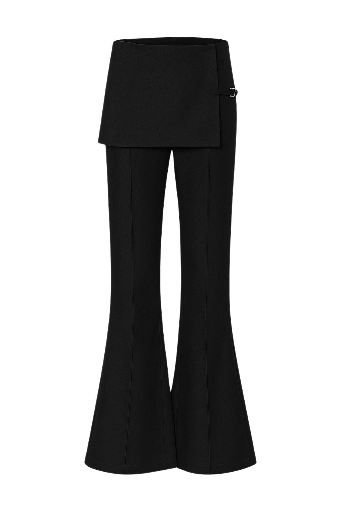 Tailored with a twist. The Mila Trousers feature a structured mini overlay and clean flared leg, finished with a subtle front pleat and side buckle detail. Designed to elevate your basics—style with a simple tank or fitted knit.