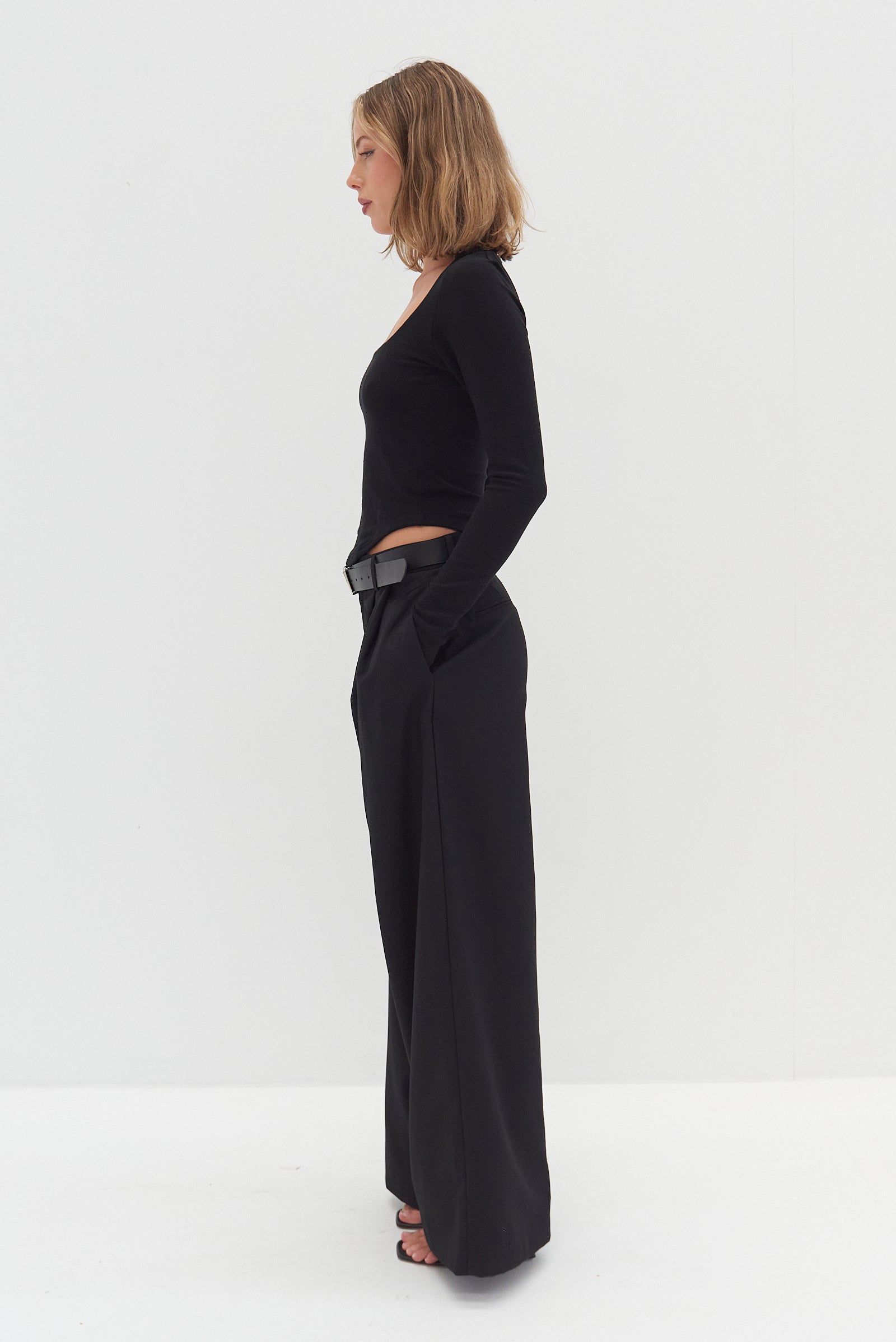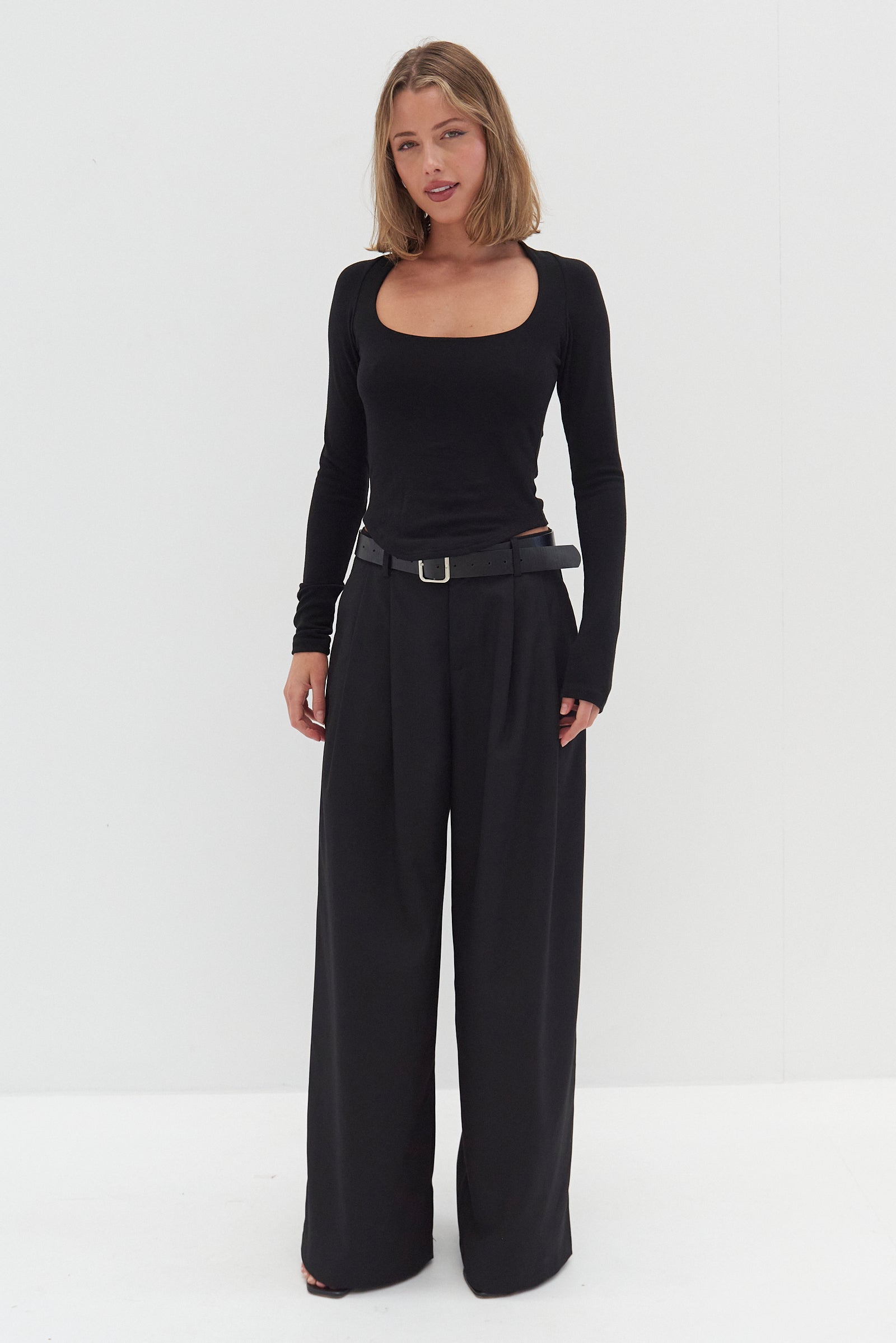 The Ryleigh Top - Black features a wide scoop neckline and a flattering curved hemline, it effortlessly enhances your silhouette.