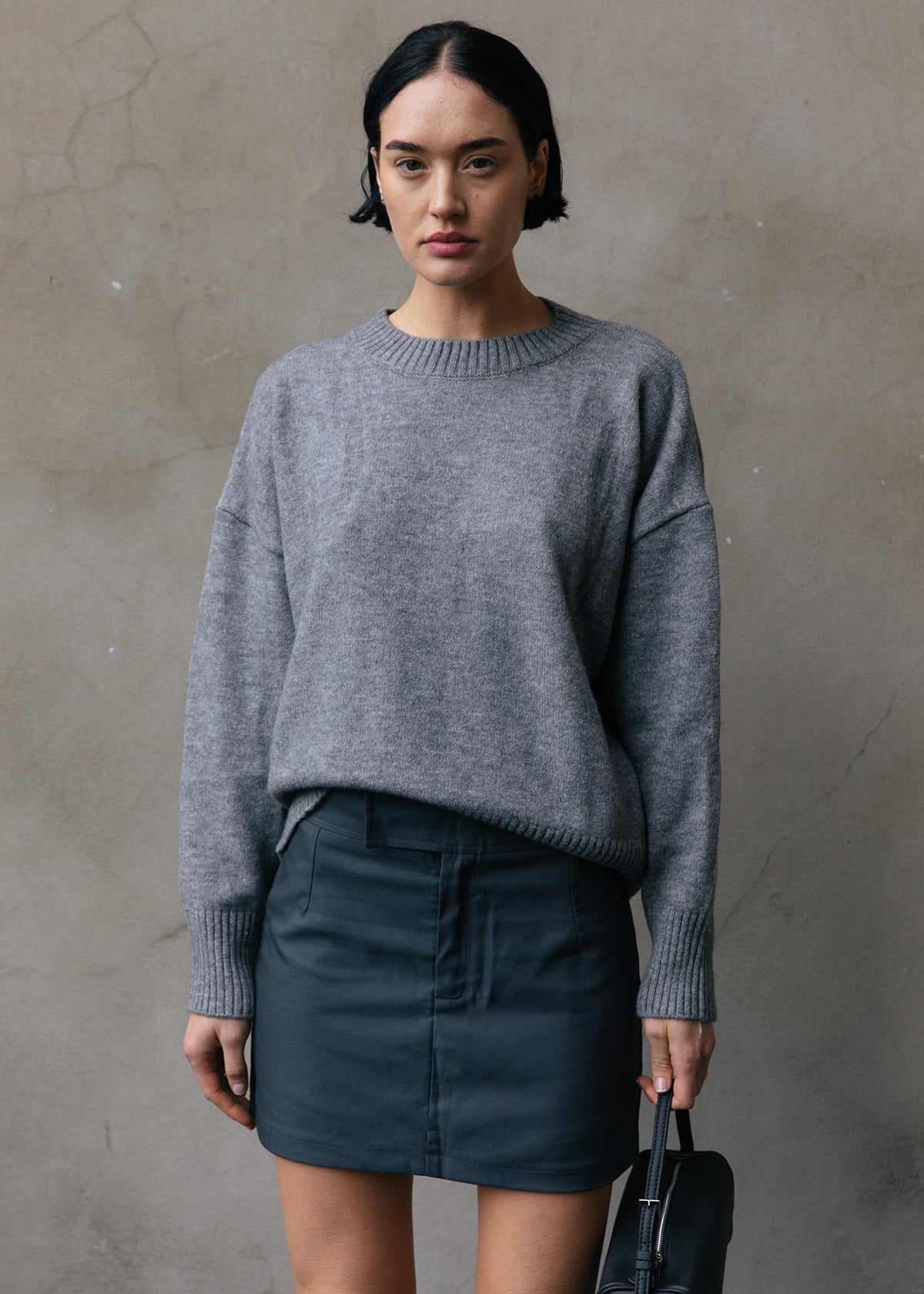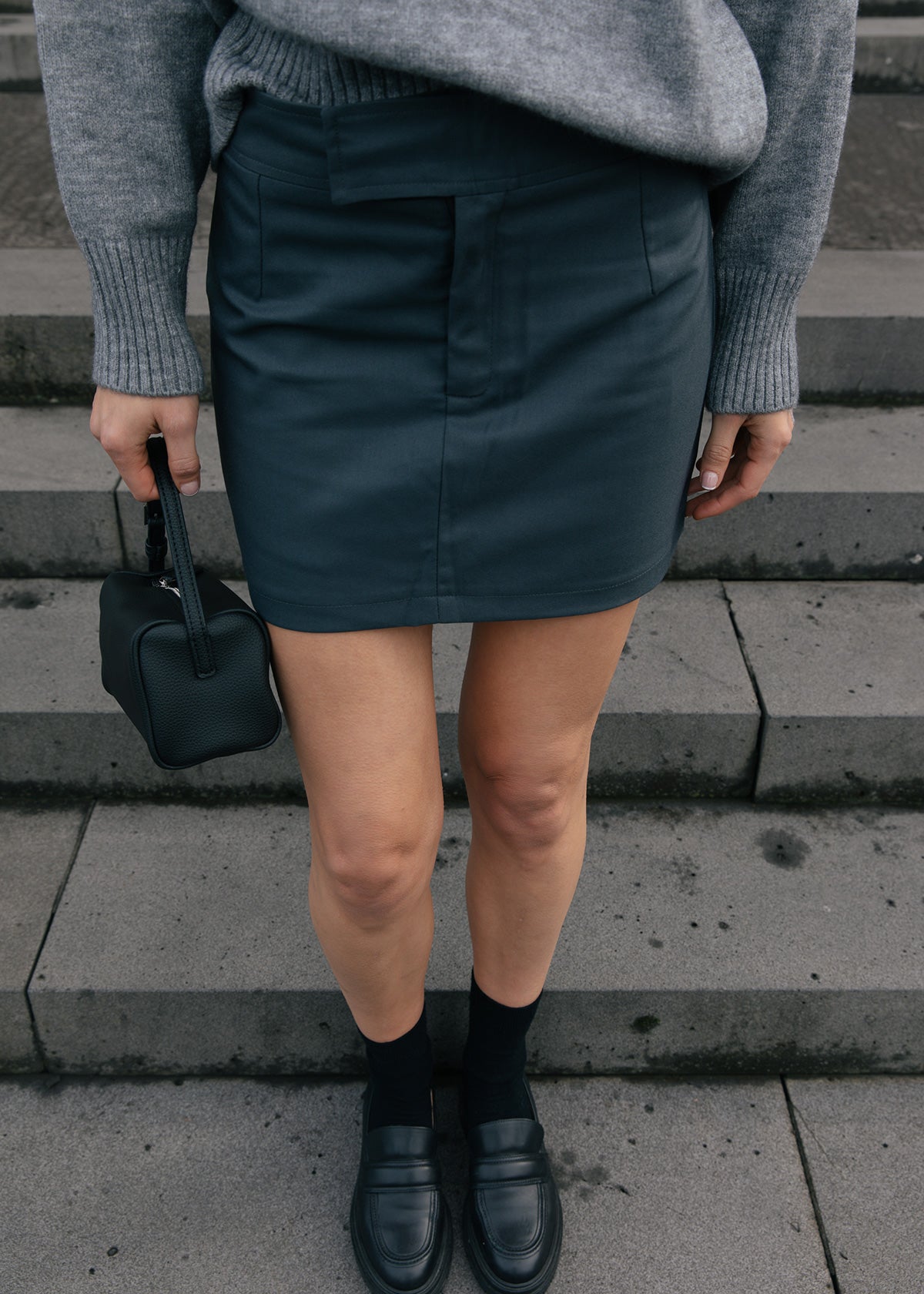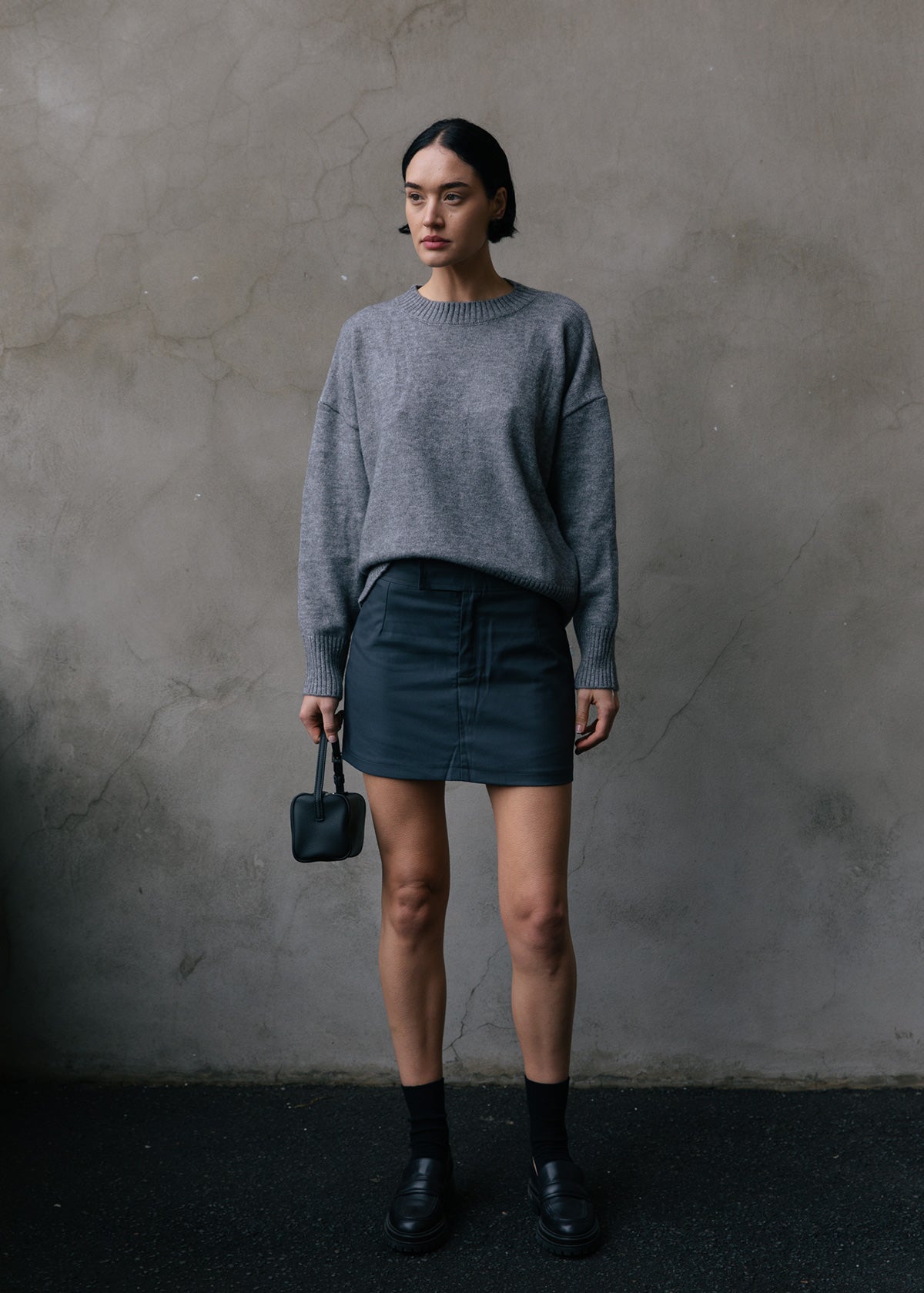 The Tina Mini Skirt in Grey offers a minimal and sleek design, complete with hidden shorts for added comfort and coverage. Completed with zip and flap closure.
